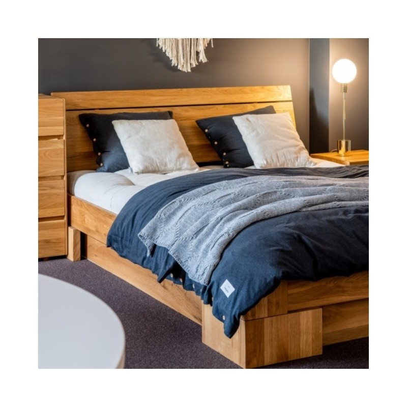 Bardzo stabilne i solidne łóżko dębowe wyposażone w funkcjonalny pojemnik. Vigo posiada piękne, monumentalne nogi o przekroju litery L, które są ozdobą i podporą całej formy. Zastosowane drewno dębowe sprawia, że łóżko jest bardzo wytrzymałe i solidne. Naturalne usłojenie dębu dodaje lekkości i niepowtarzalnego charakteru.