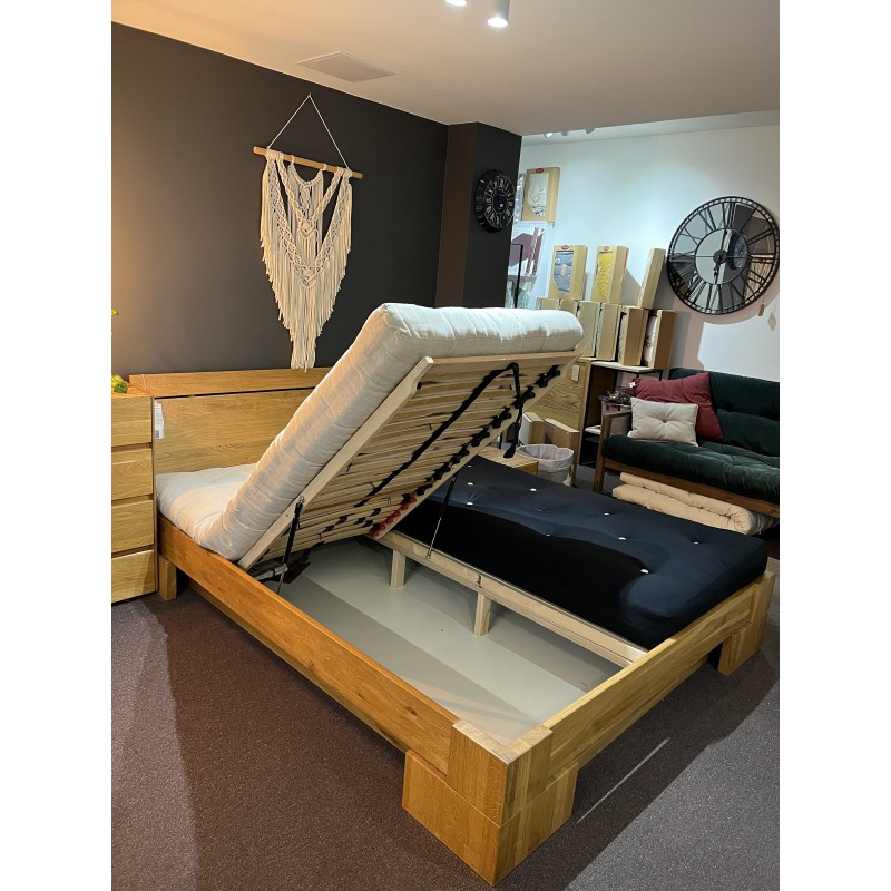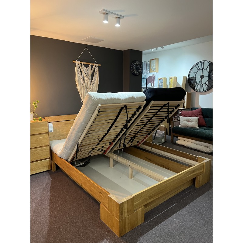 Łóżko dębowe 160x200 z pojemnikiem na pościel VIGO P - WYPRZEDAŻ EKSPOZYCJI