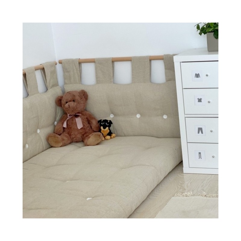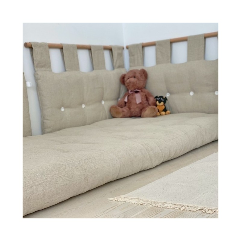 Na zdjęciu 3 poduszki w poszyciu z lnu w zestawie z materacem Futon Standard 90x200 w tkaninie lnianej. Cena dotyczy 1 sztuki. Drążek nie jest w zestawie.